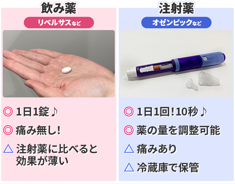 GLP-1の摂取方法は主に注射薬と飲み薬の2種類があります。